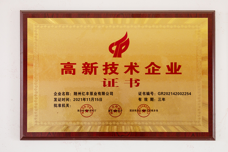 隨州億豐泵業(yè)有限公司位于隨州市曾都經(jīng)濟(jì)開發(fā)區(qū),建筑面積15000平方米,公司現(xiàn)有大學(xué)文憑以上的35人、技術(shù)人員25人(高級職稱5人、中級職稱以上27人)。公司自成立以來先后獲得高新技術(shù)企業(yè)、“專精特新”小巨人企業(yè)、隱形冠軍、著名商標(biāo)等一系列榮譽(yù)。